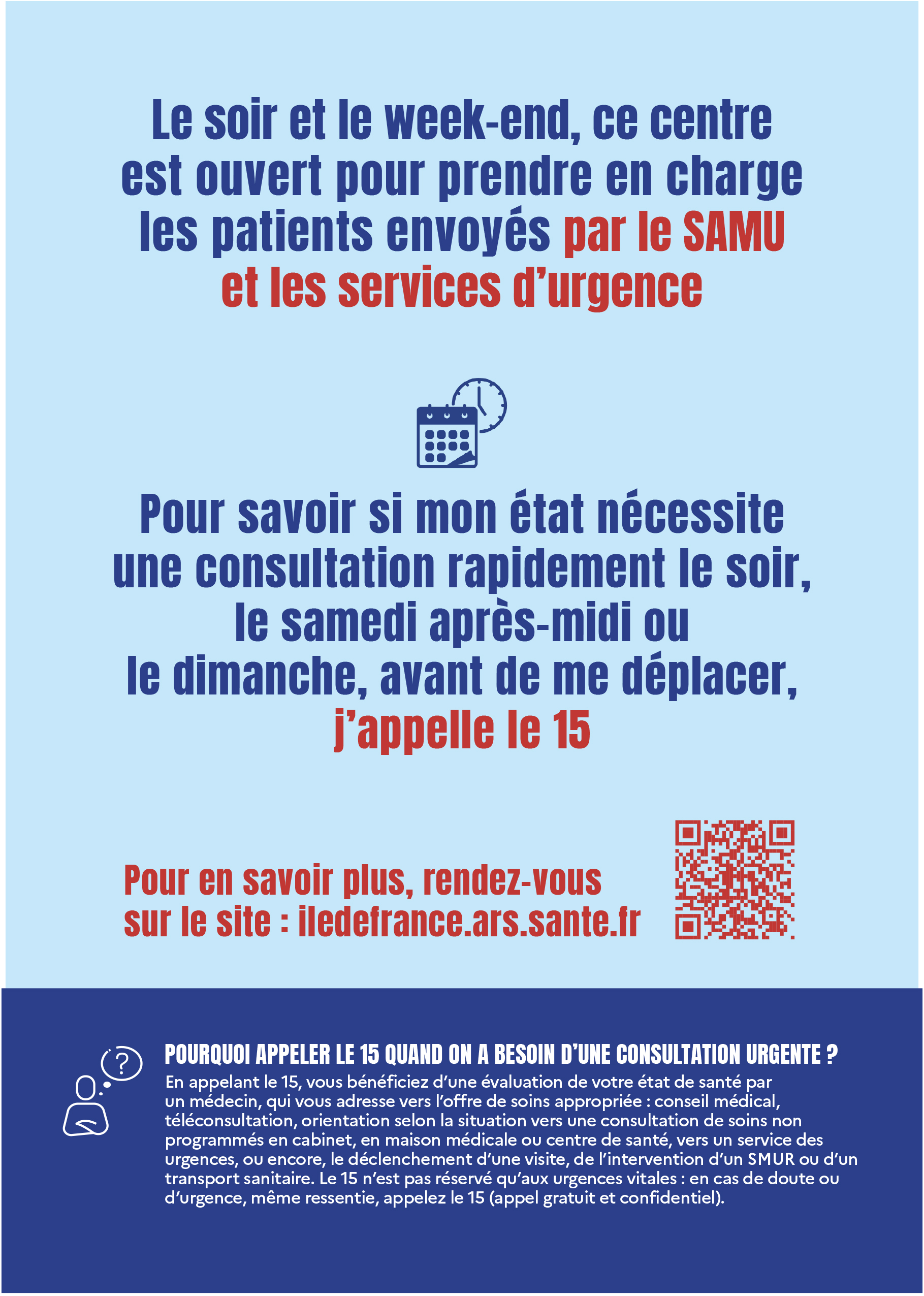 3) Le soir, le week-end et les jours fériés : avant de vous déplacer, appelez le 15