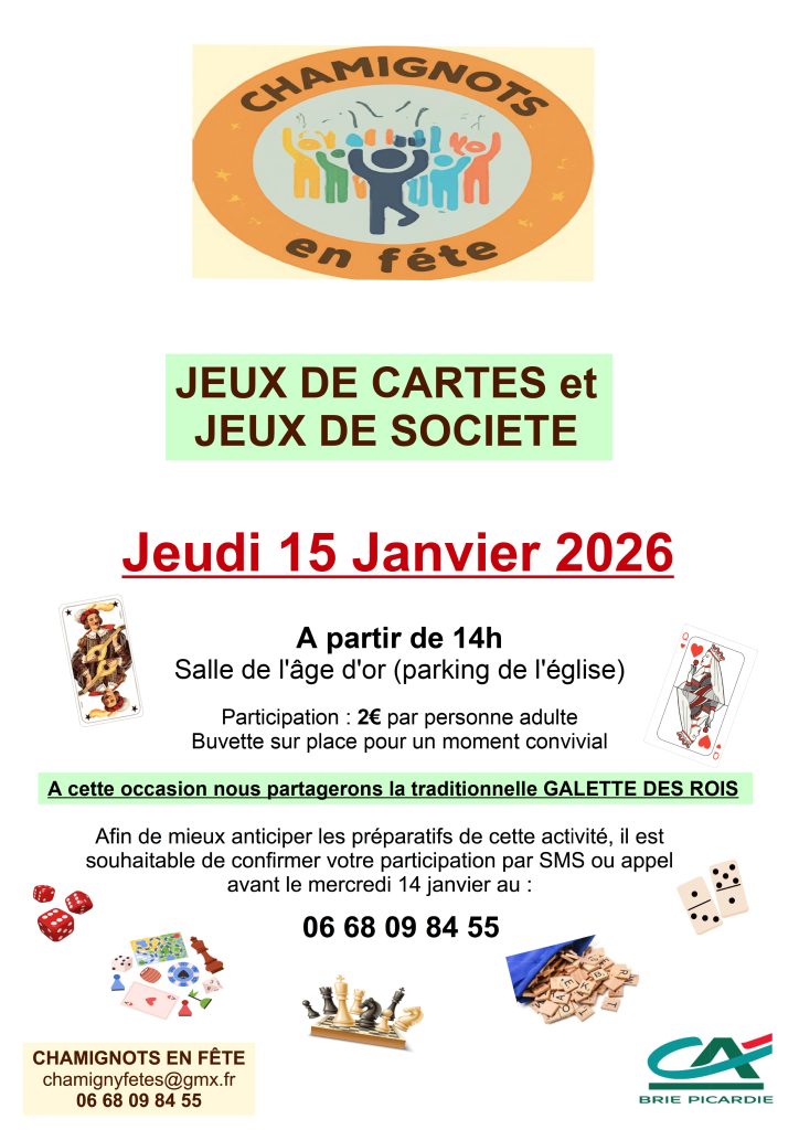 L’association Chamignots en fête invite les habitants de Chamigny à partager un moment convivial autour des jeux de cartes et des jeux de société, à l’occasion d’un après-midi ouvert à toutes et tous.