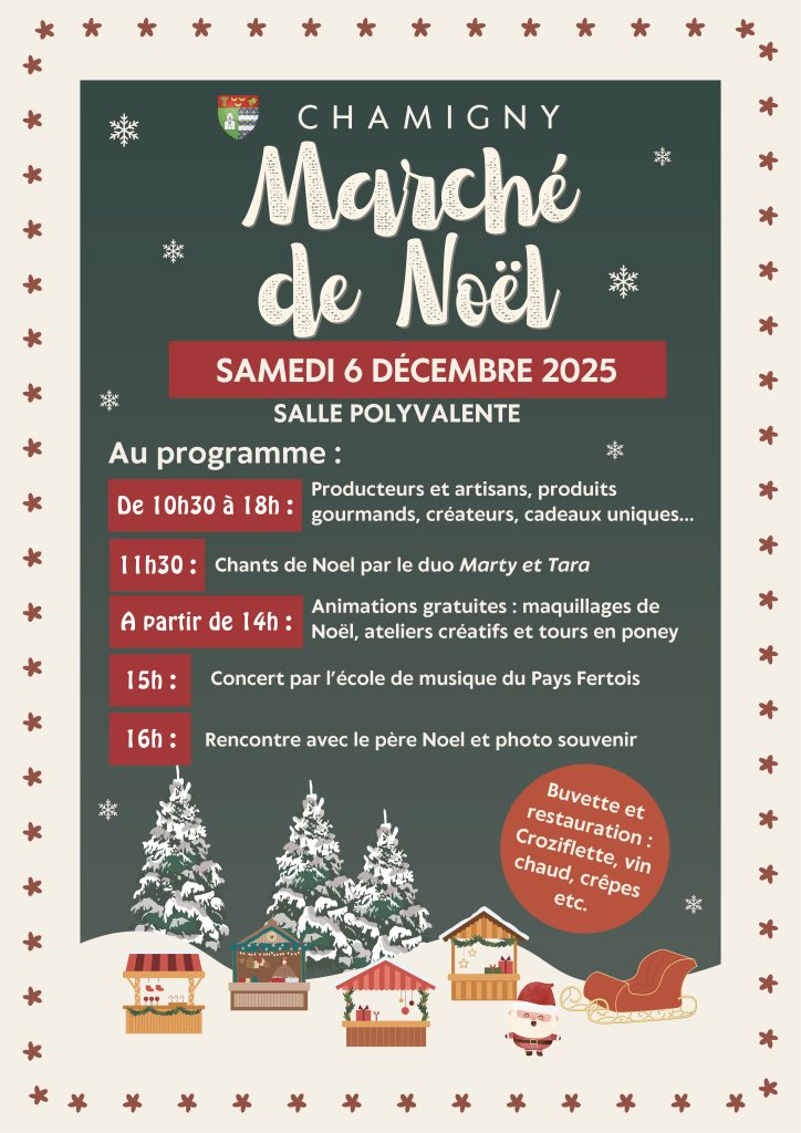 Samedi 06 décembre 2025 — 10h30 à 18h00 — Salle polyvalente de Chamigny — Entrée libre