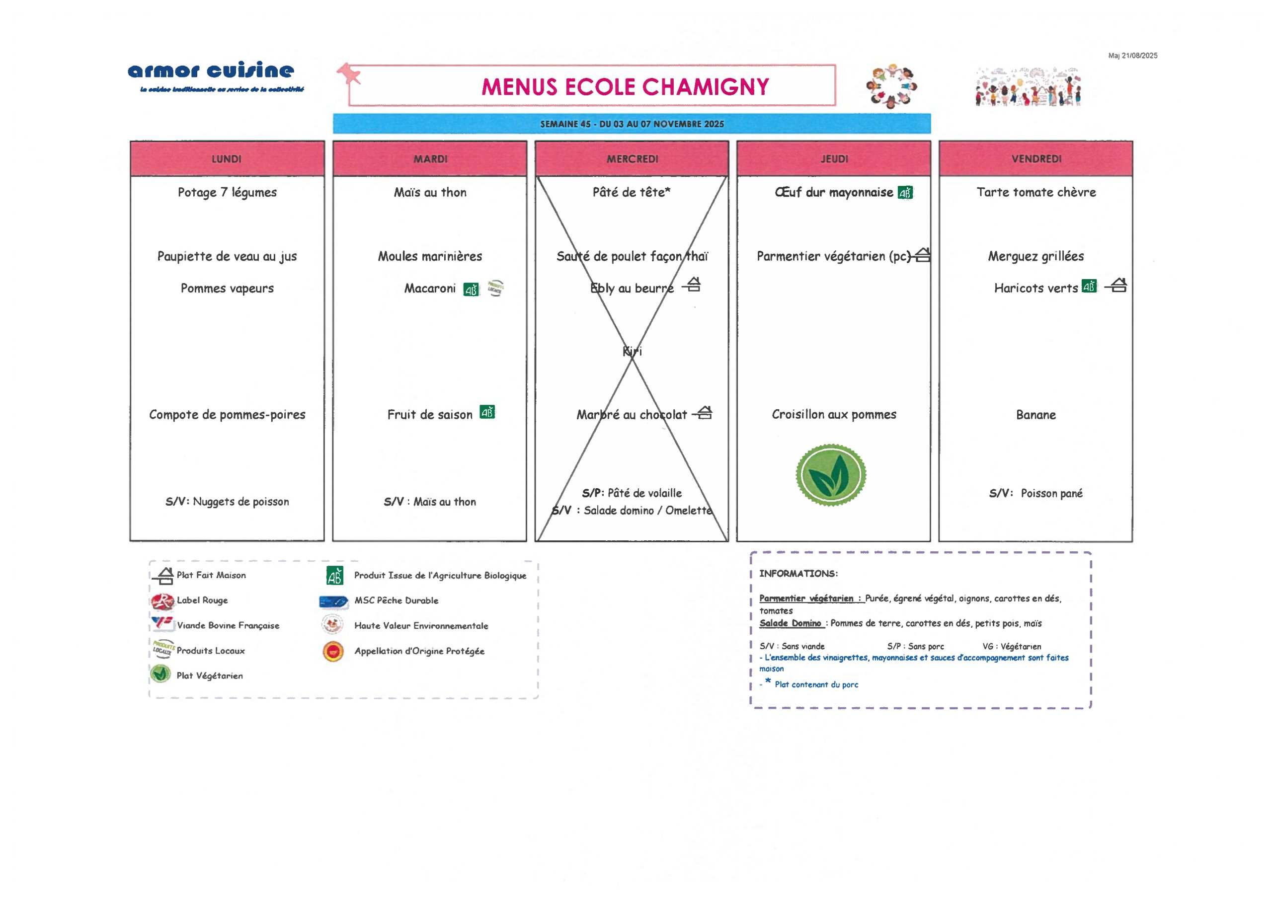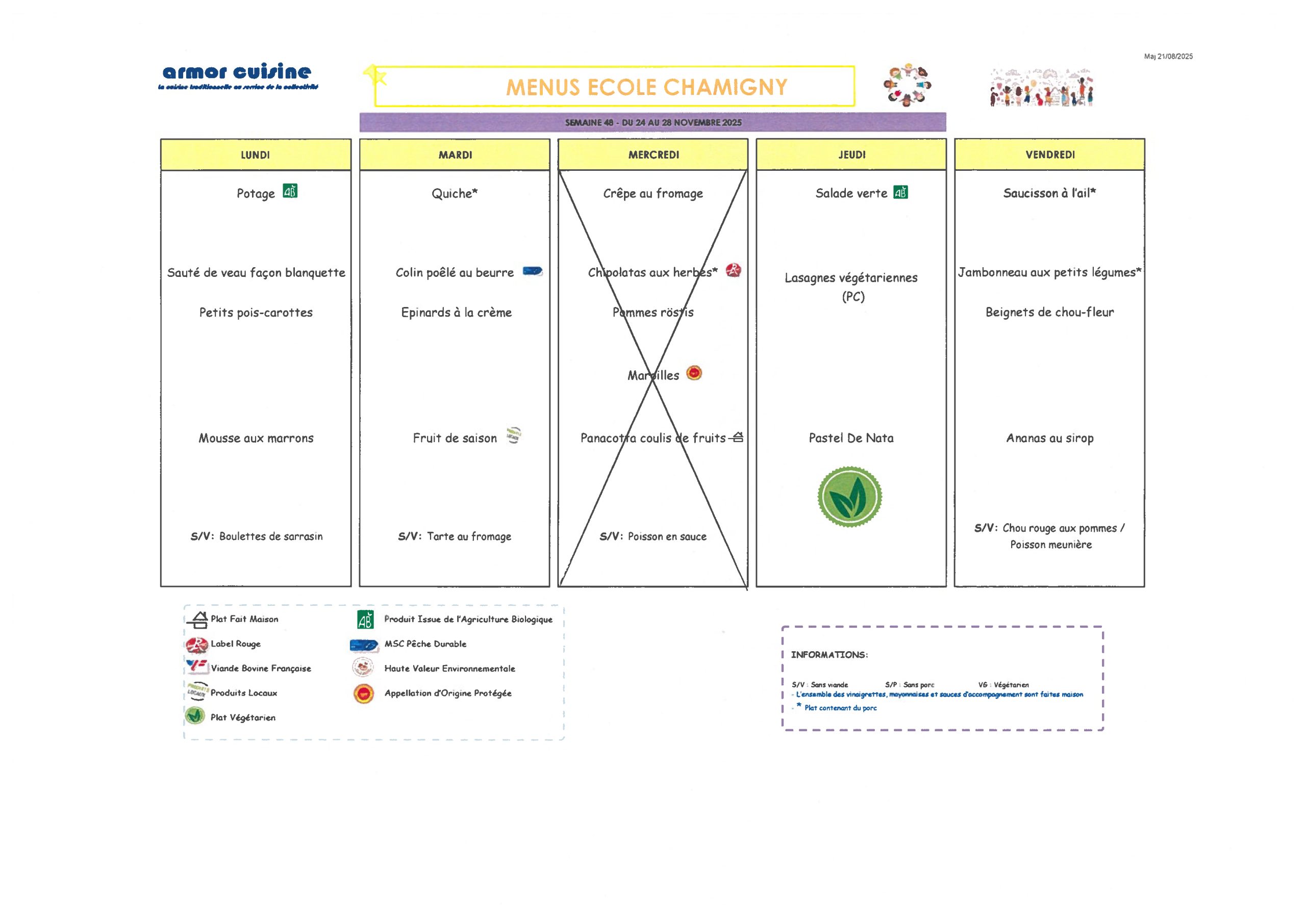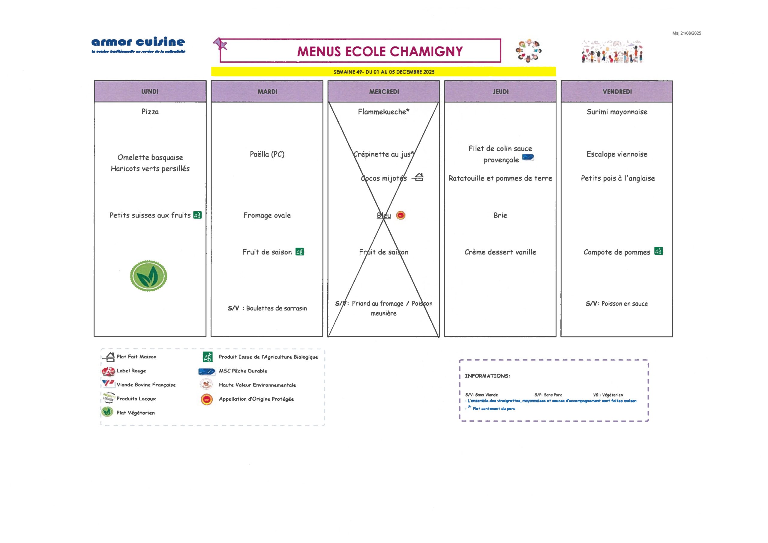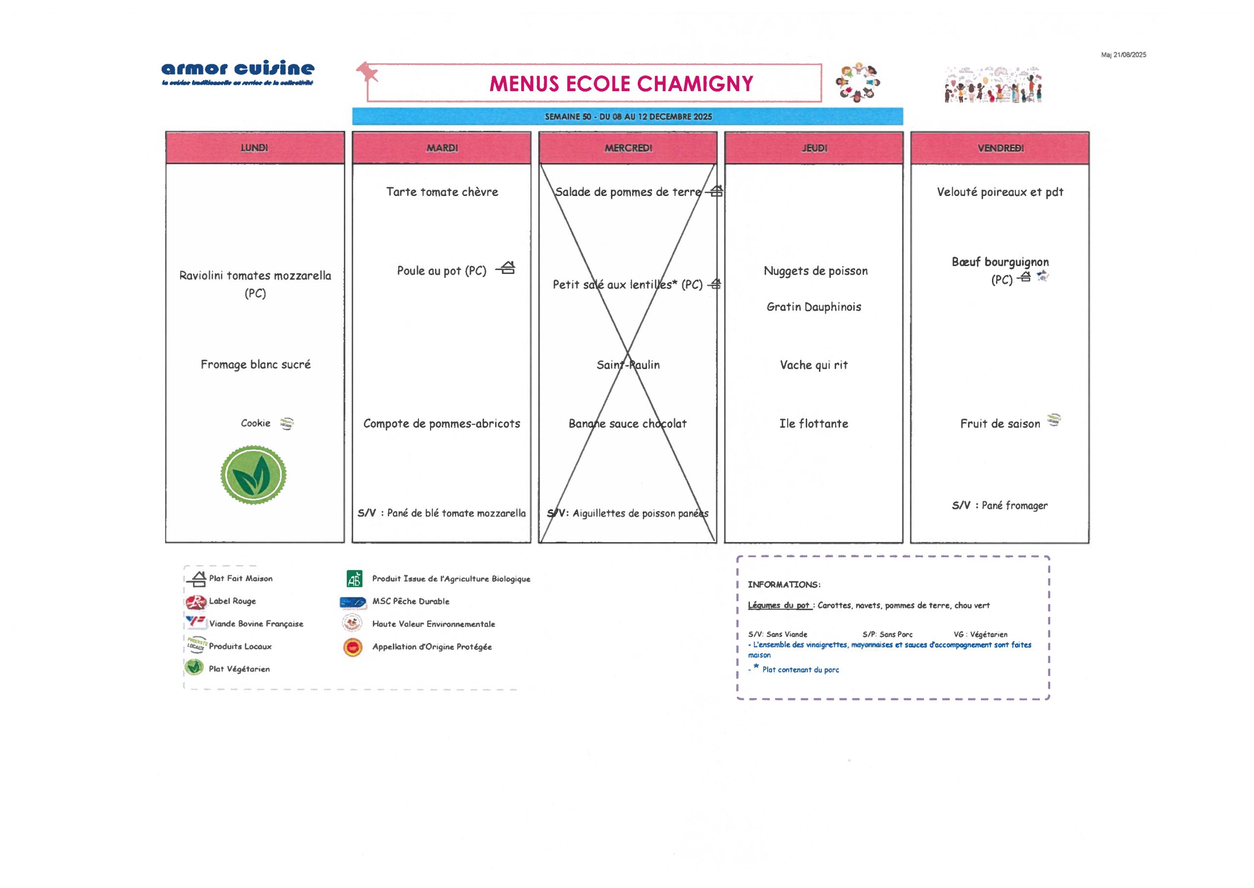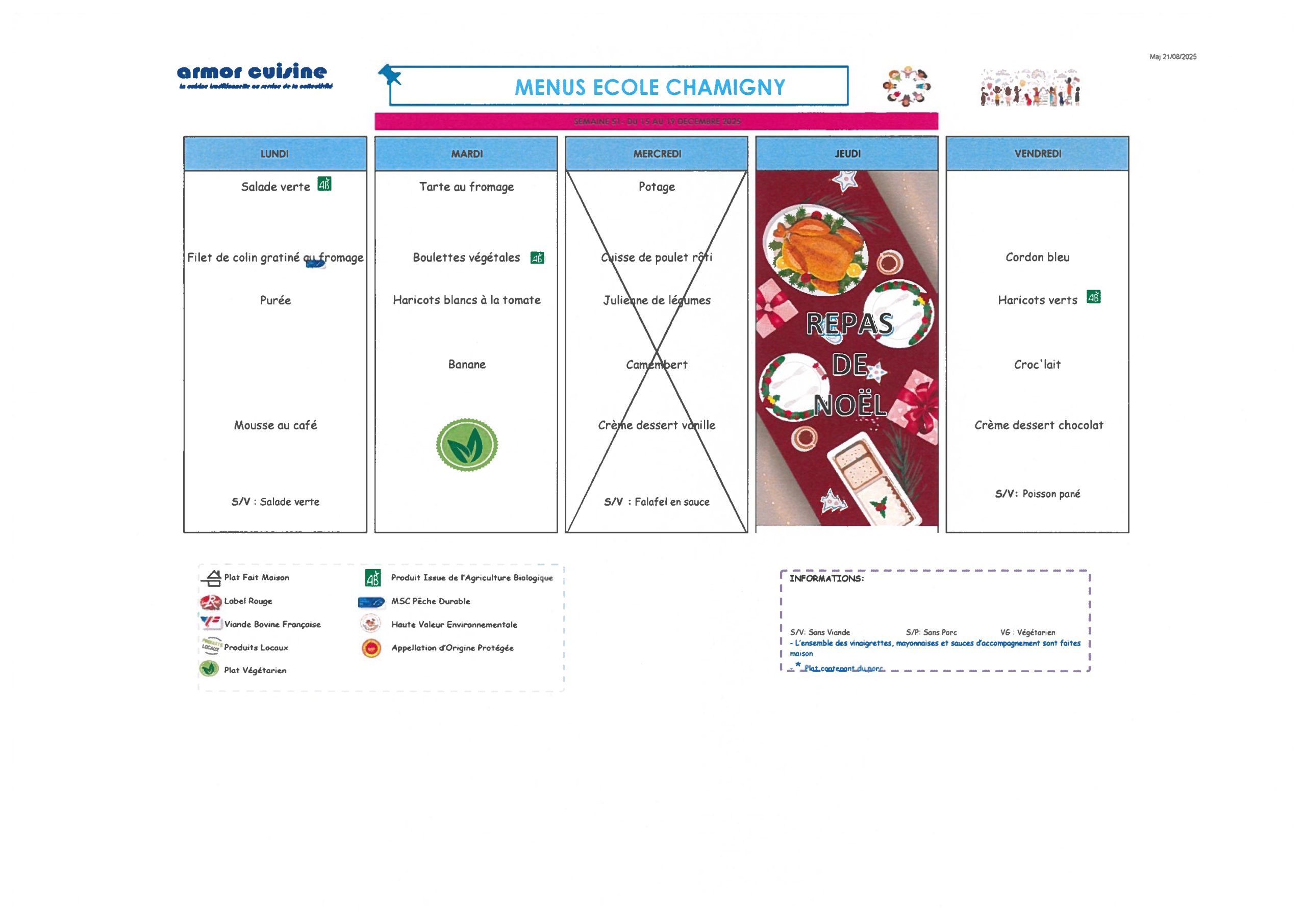 Menus de la cantine du 03 novembre au 19 décembre 2025