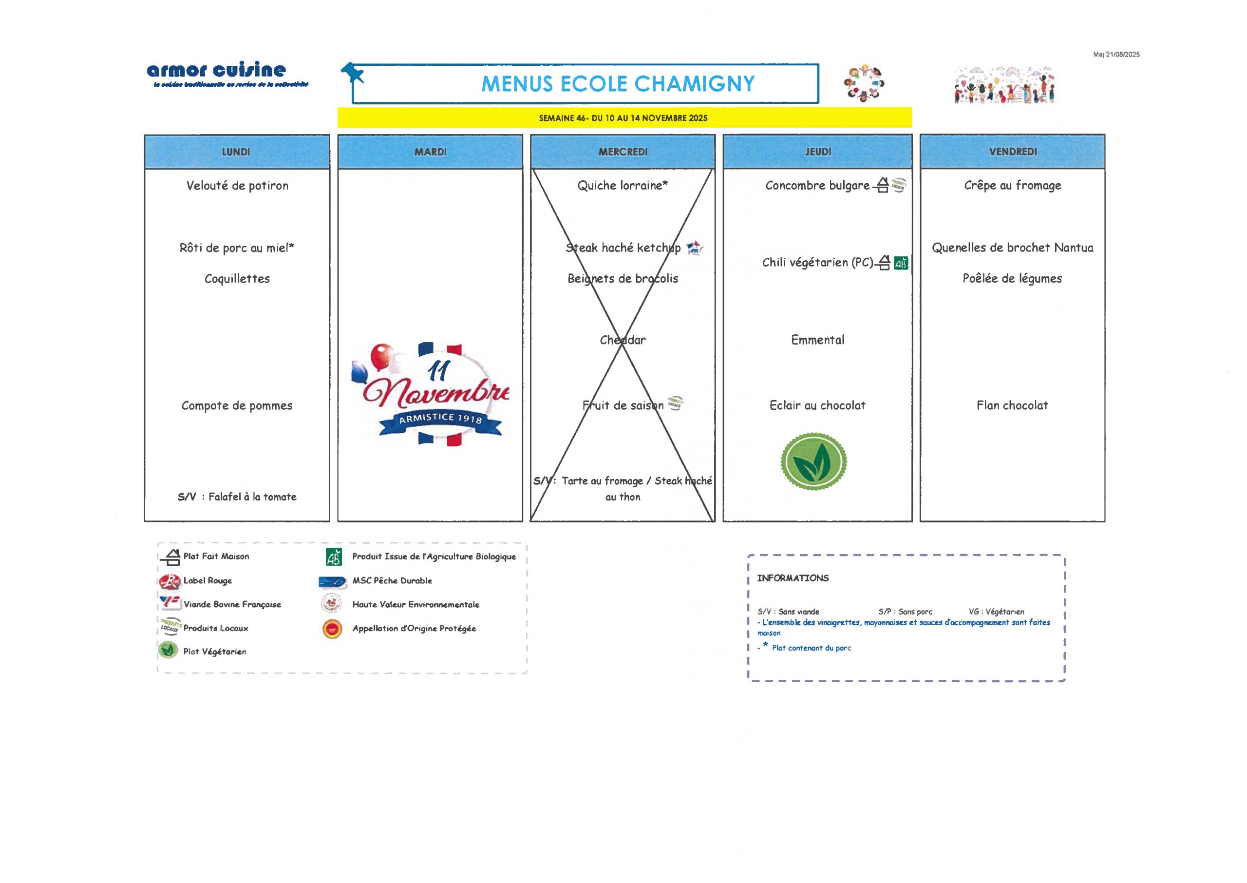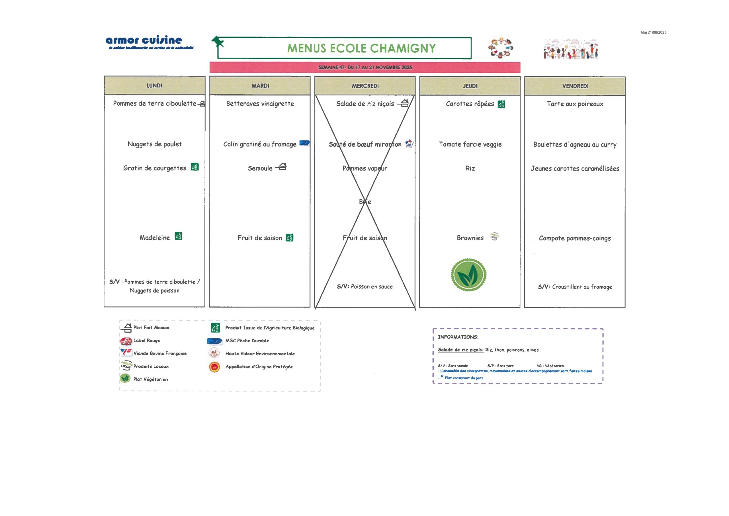 Veuillez trouver ci-dessous les menus, préparer par Amor Cuisine qui attendent nos enfants à la pause méridienne du 03 novembre au 19 décembre 2025.