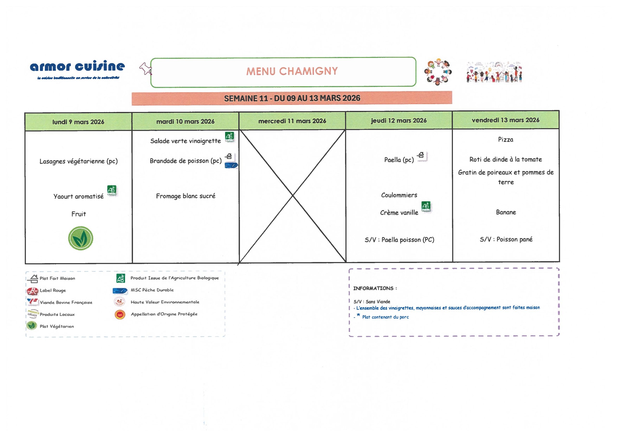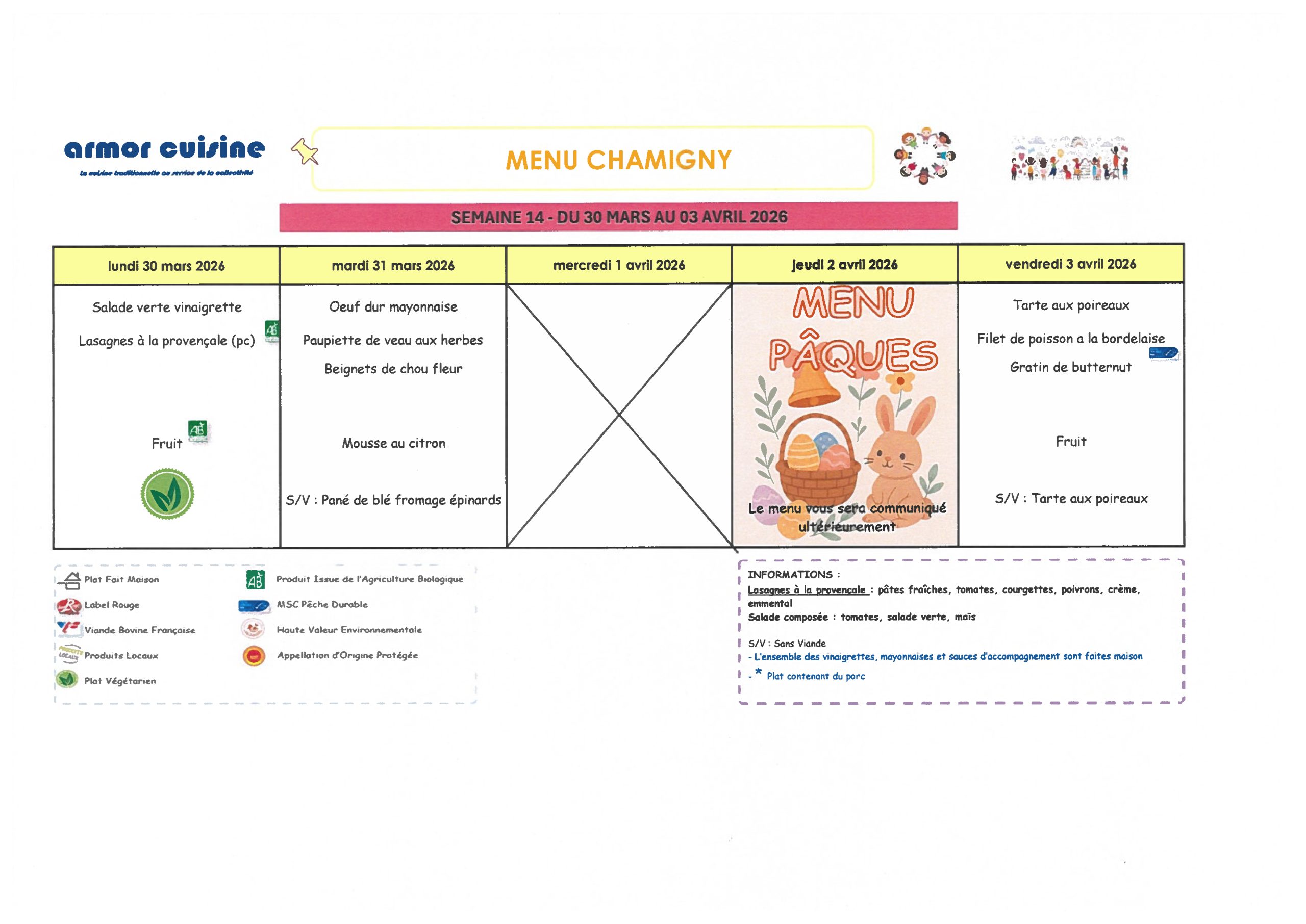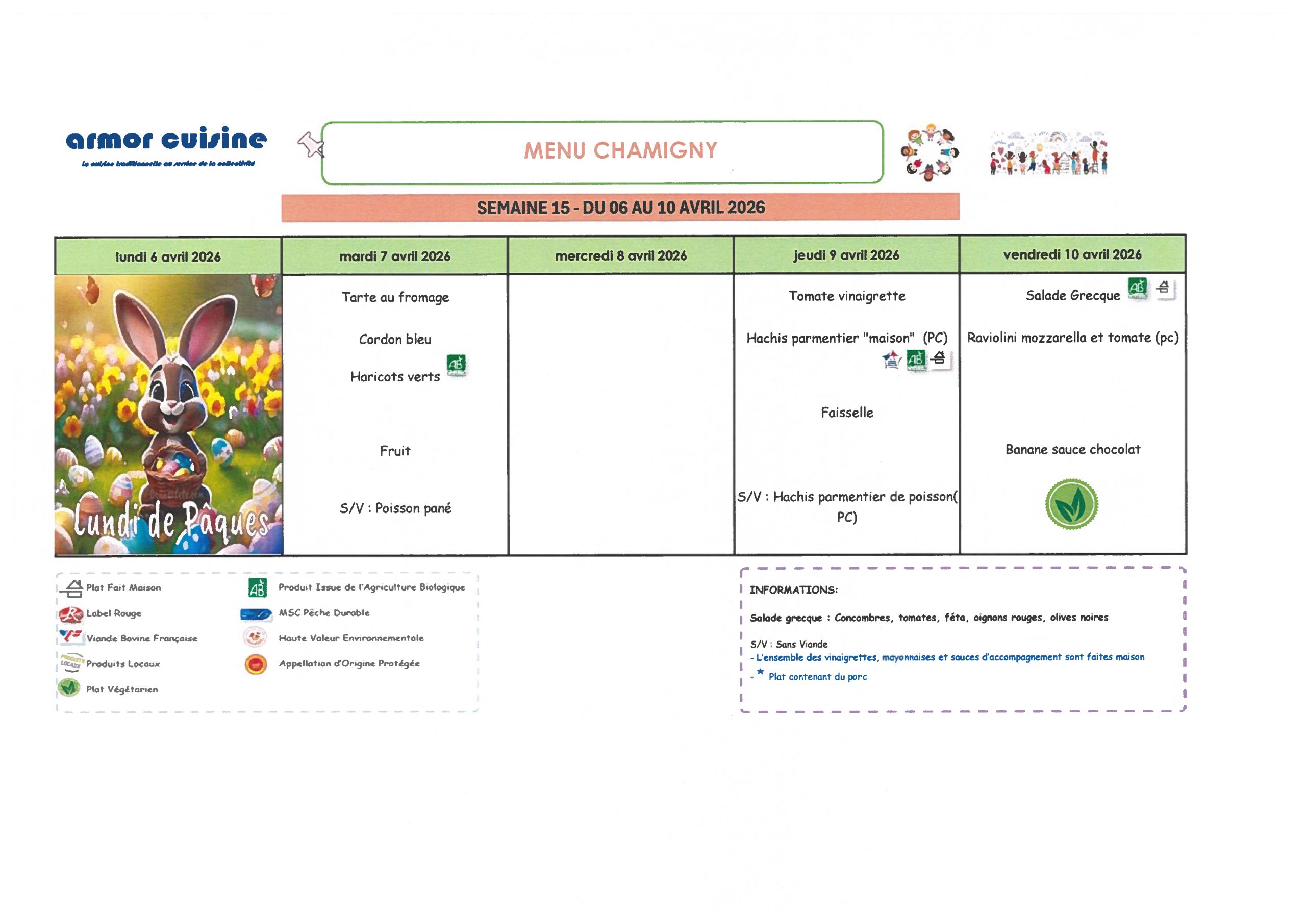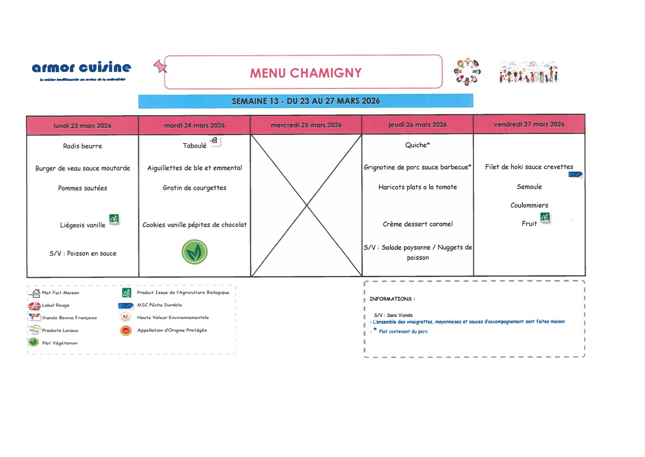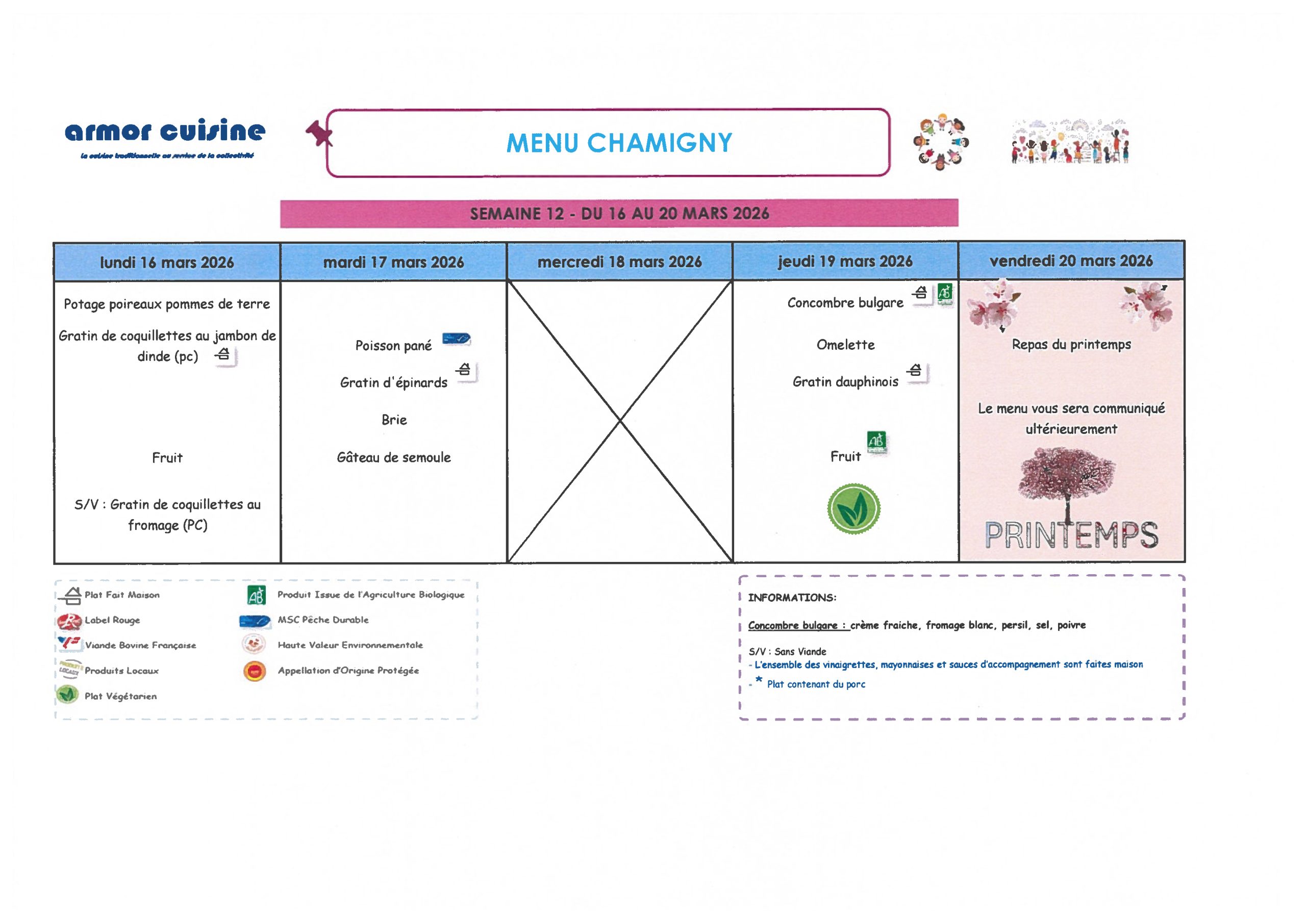 Veuillez trouver ci-dessous les menus, préparer par Amor Cuisine qui attendent nos enfants à la pause méridienne du 09 mars au 10 avril 2026.