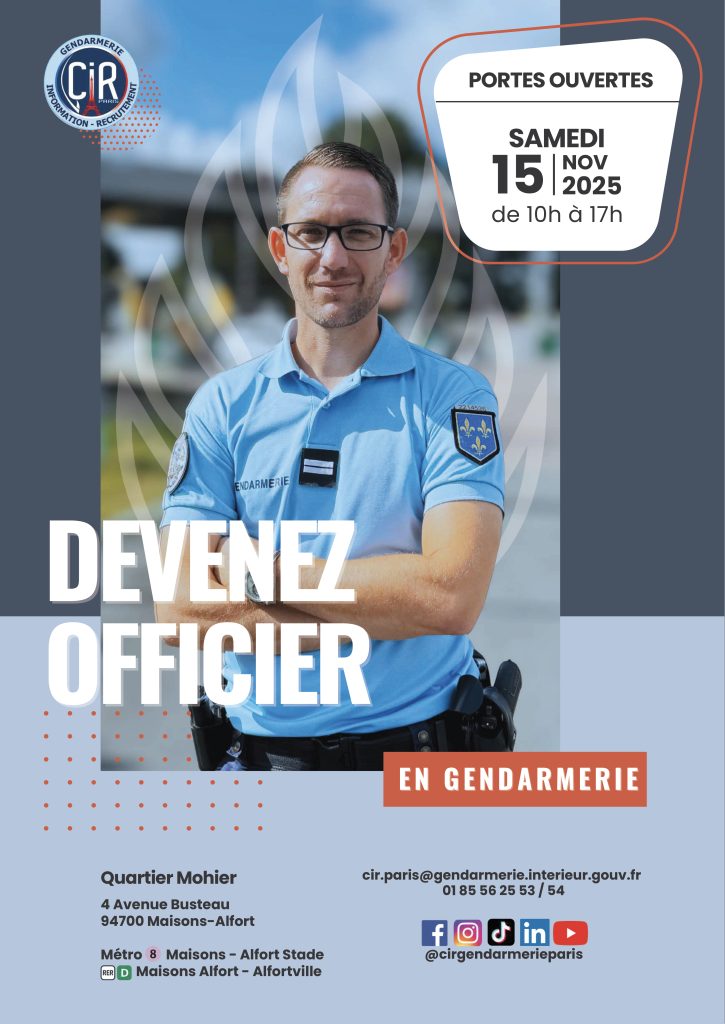 Le Centre d’Information et de Recrutement (CIR) de la gendarmerie de Paris organise une journée portes ouvertes dédiée au métier d’officier de gendarmerie.