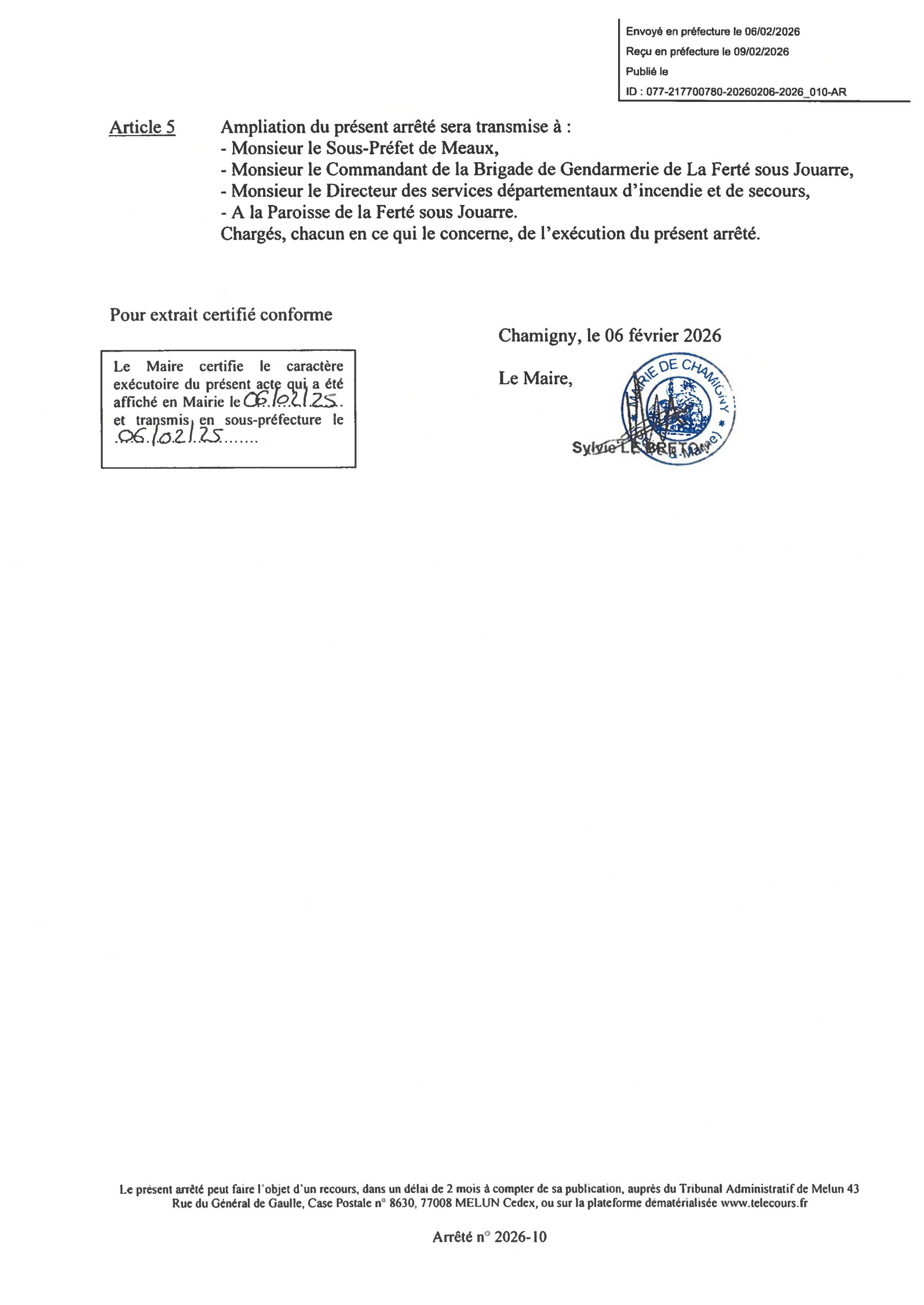 Arrêté temporaire munFermeture temporaire de l’Église Saint-Étienne de Chamigny pour raisons de sécuritéArrêté temporaire mun